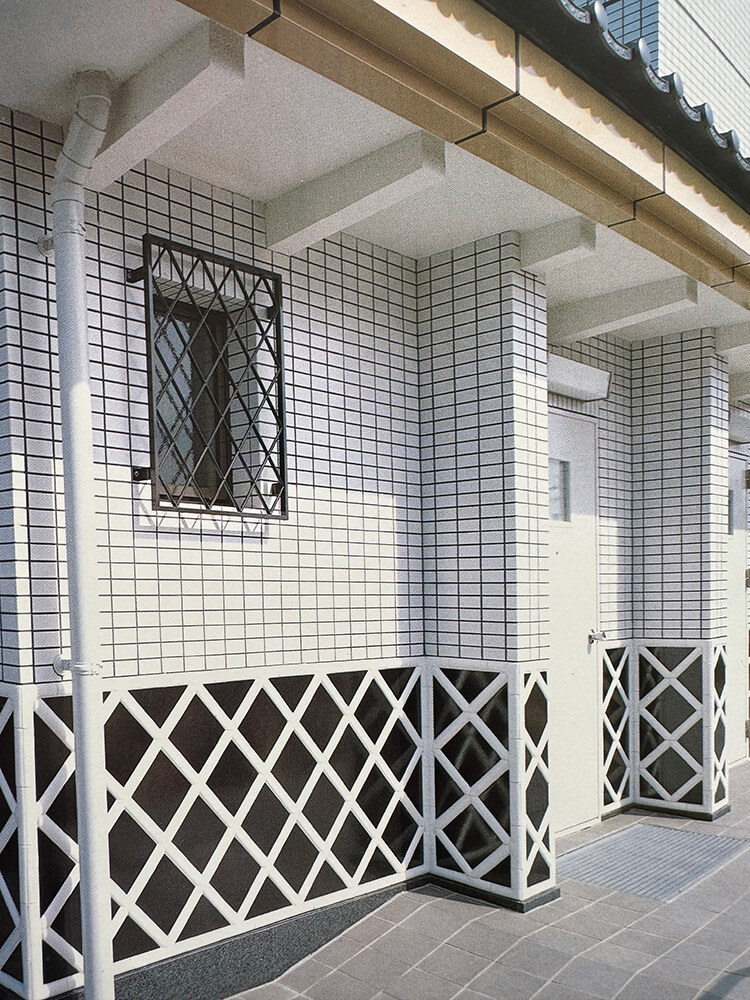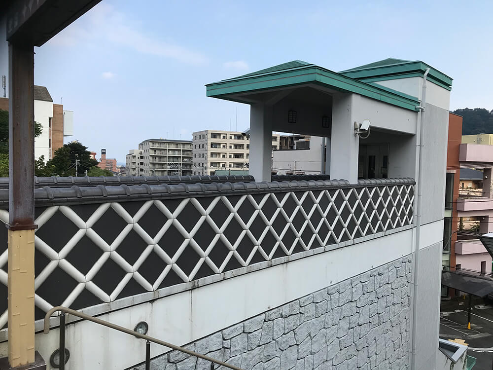 穏やかな瀬戸内海に面した柳井市は、自然に恵まれた歴史ある町として広く知られています。町並み保存地区の駐車場兼広場の塀や電話ボックスまですべて弊社の「甍」を施工させていただきました。