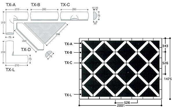 TXシリーズは伝統のなまこ壁と比べて、柔らかいイメージで現代的な建物にもしっくりとくるデザインです。菱形状のパターンを展開しております。